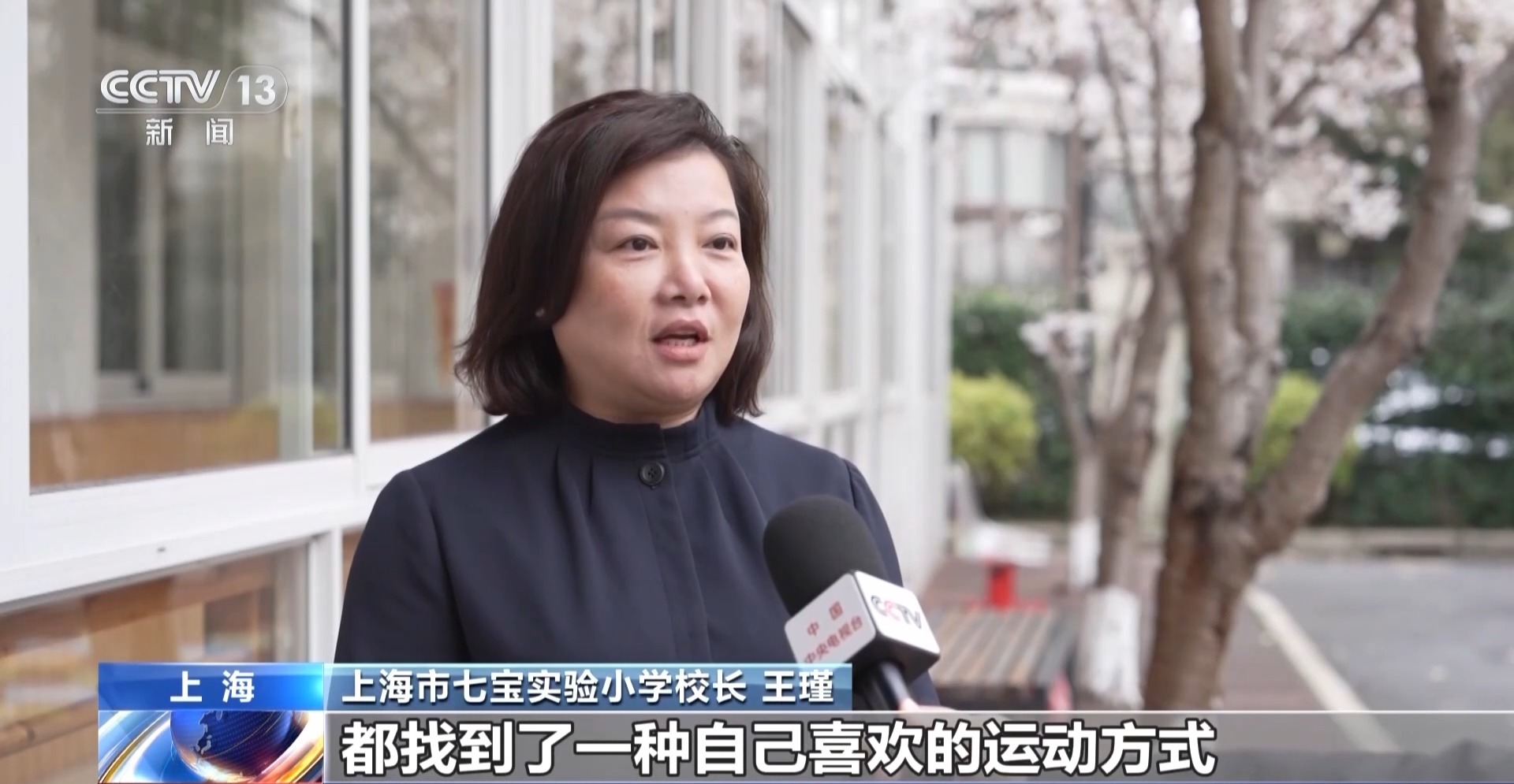 上海市七宝实验小学校长 王瑾:让我们学校的每一个孩子都找到了一种自己喜欢的运动方式,通过15分钟的调节以后,他们的下一节课就更加富有生机和活力。