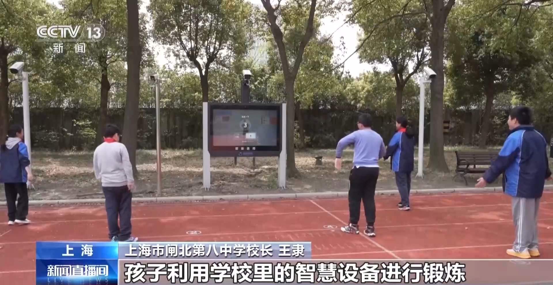 在上海市闸北第八中学,AI智能设备不仅可以及时掌握学生的运动数据,还可以进行互动游戏。