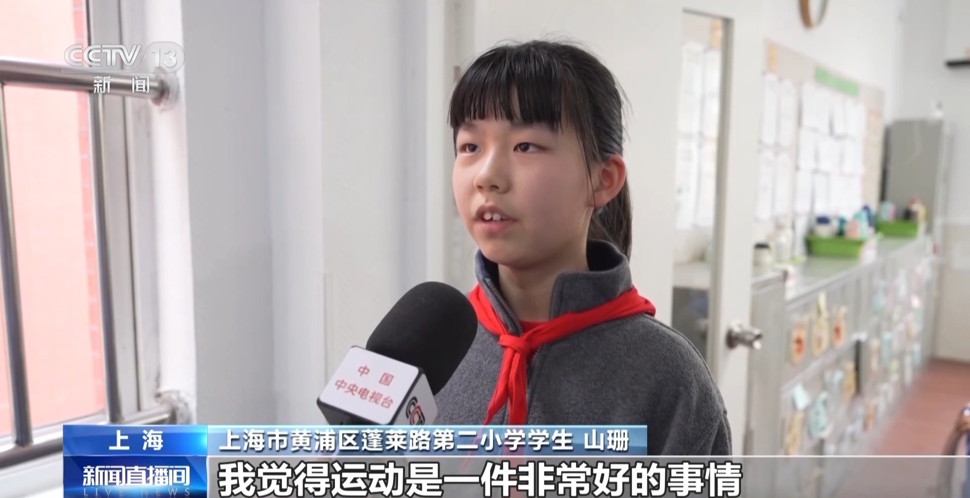 上海市黄浦区蓬莱路第二小学学生 山珊:我觉得运动是一件非常好的事情,会让我觉得身心更放松,可以让我在学习上更专注。